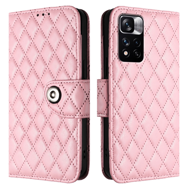 Para Redmi Note 11 Pro + 5G Eu Funda de Cuero con Tapa con Textura Rómbica y Cordón (Rosa)