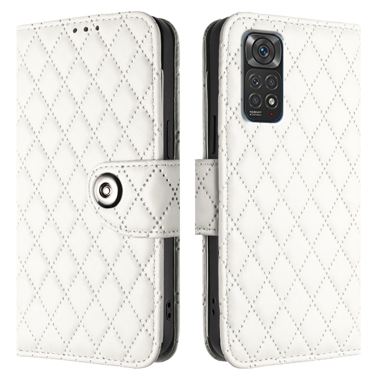 Para Redmi Note 11S 5G Funda de Cuero con Tapa con Textura Romboidal y Cordón (Blanco)