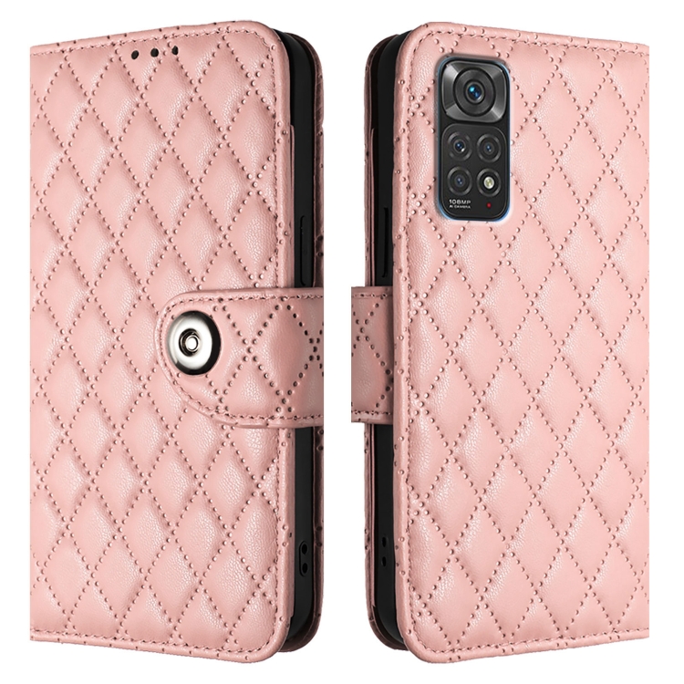 Para Redmi Note 11S 5G Funda para Teléfono de Cuero con Tapa con Textura Romboidal y Cordón (Rosa Coral)