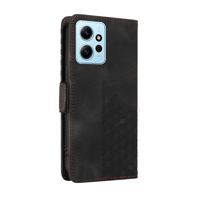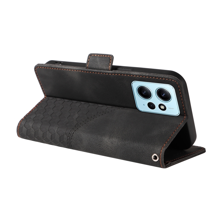 Para Redmi Note 12 4G Funda de Teléfono de Cuero Estrellado con Rombo En Relieve Global (Negro)