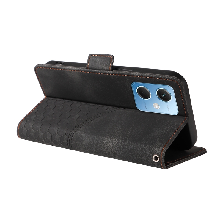Para Redmi Note 12 5G Funda para Teléfono de Cuero Estrellado con Rombo En Relieve Global (Negro)