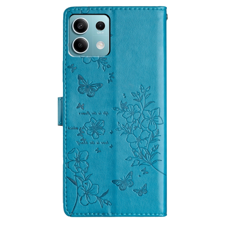 Para Redmi Note 13 5G Funda de Cuero para Teléfono con Mariposas y Flores (Azul)