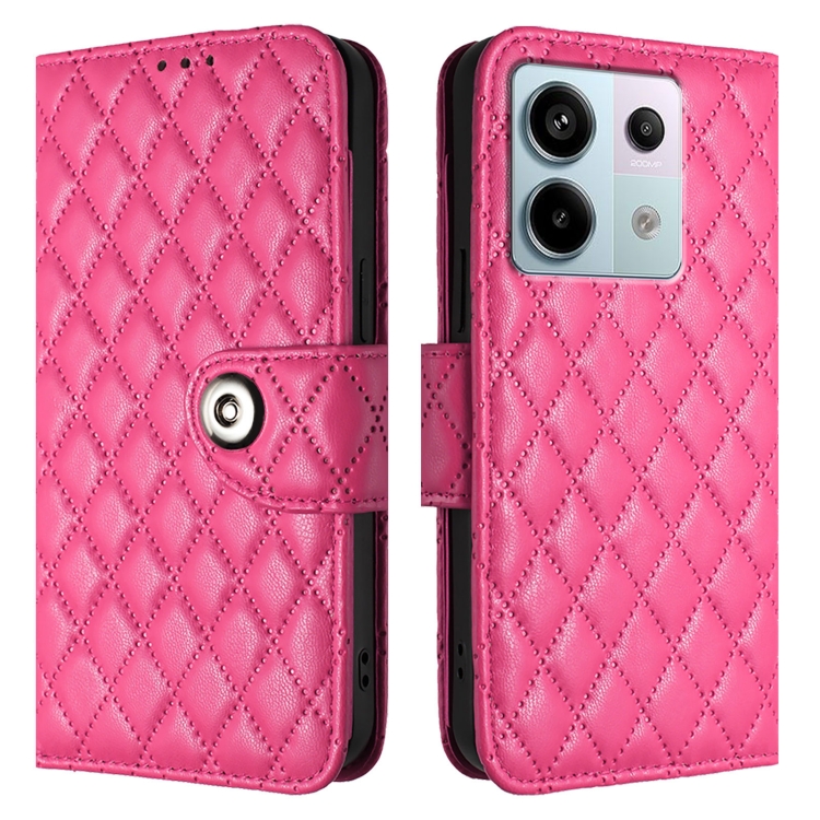Para Redmi Note 13 Pro 5G Funda para Teléfono con Tapa de Cuero con Textura Rómbica Global y Cordón (Rojo Rosa)