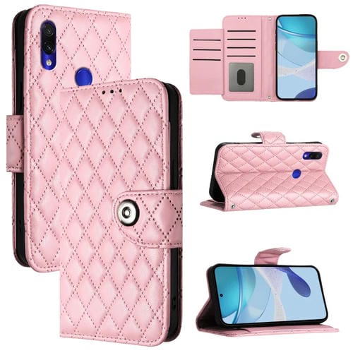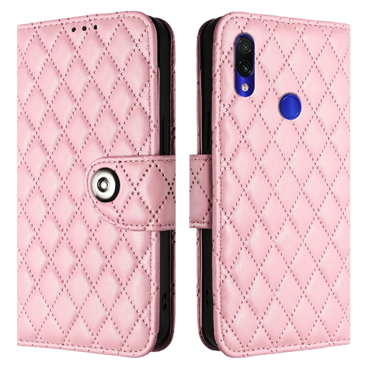 Para Redmi Note 7/7 Pro / 7S Funda para Teléfono de Cuero con Tapa con Textura Rómbica y Cordón (Rosa)