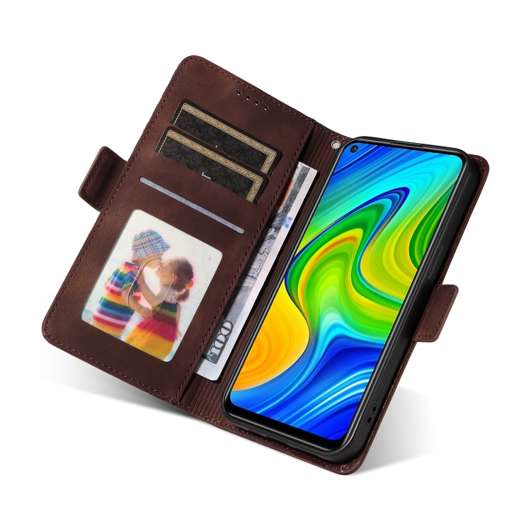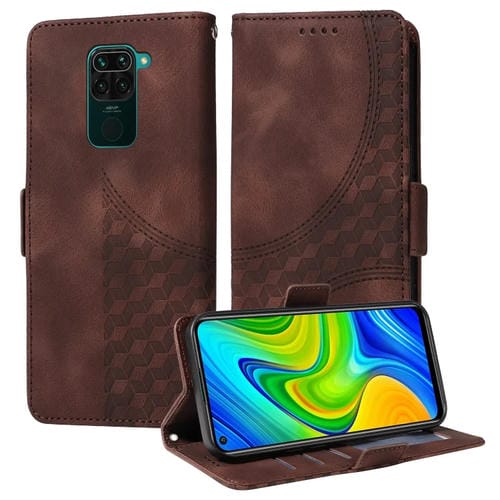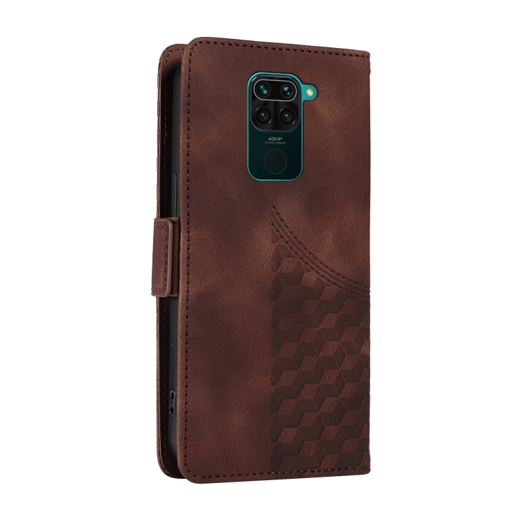 Para Redmi Note 9 4G Funda de Teléfono de Cuero Estrellado con Rombo En Relieve Global (Marrón)