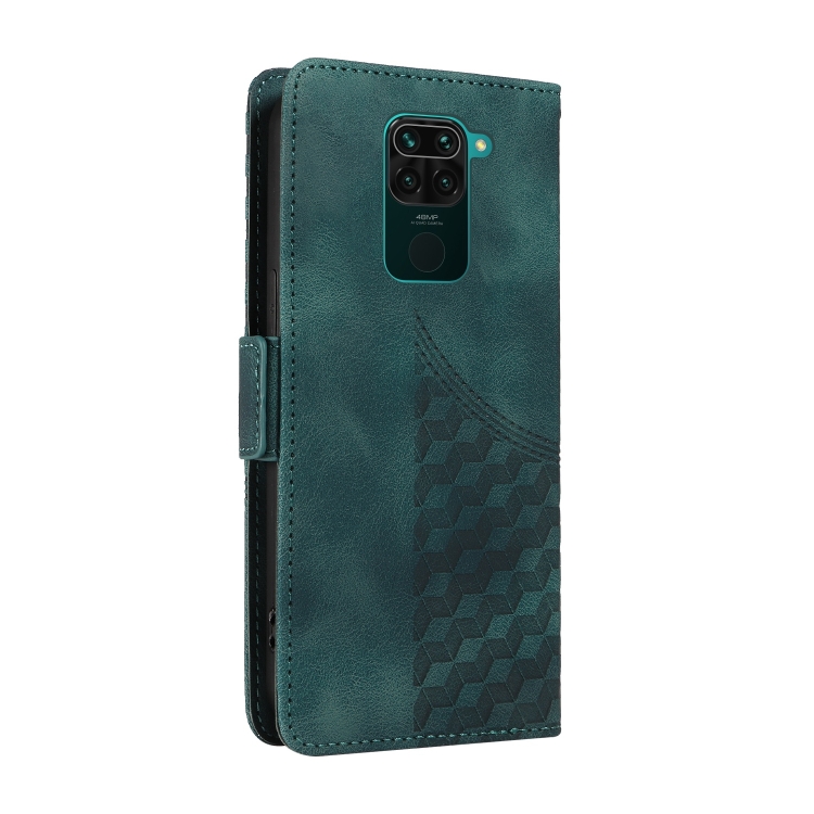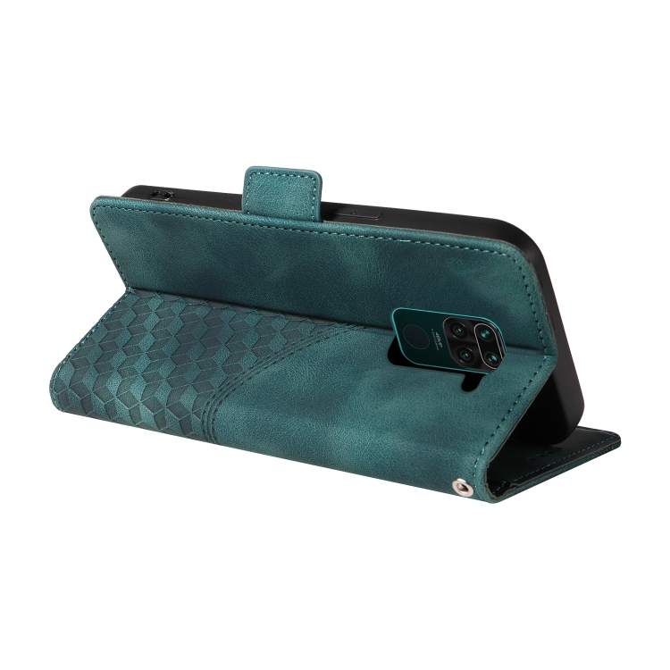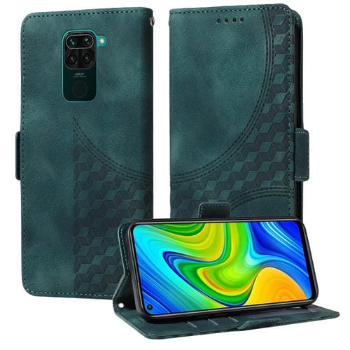 Para Redmi Note 9 4G Funda de Teléfono de Cuero Estrellado con Rombo En Relieve Global (Verde)