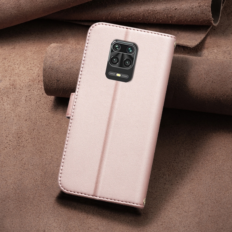 Para Redmi Note 9 Pro Max / 9 Pro / 9S Funda de Cuero con Textura Cuadrada para Teléfono (Oro Rosa)