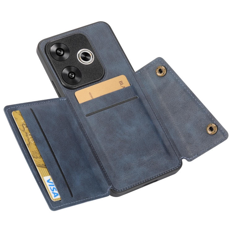 Para Redmi Turbo 3 Estuche Magnético para Teléfono con Ranuras para Tarjetas con Doble Hebilla (Azul)