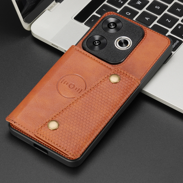Para Redmi Turbo 3 Estuche Magnético para Teléfono con Ranuras para Tarjetas con Doble Hebilla (Marrón)