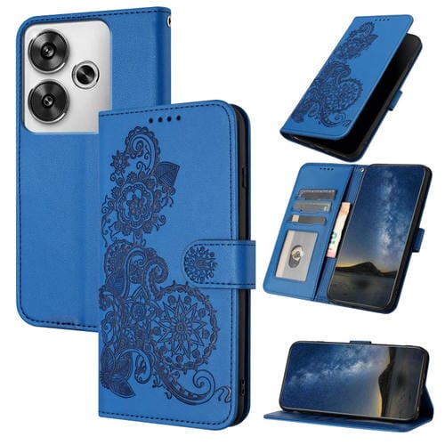 Para Redmi Turbo 3 / Xiaomi Poco F6 Datura Flower Funda de Cuero con Tapa En Relieve (Azul)