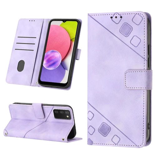 Estuche para Teléfono Samsung Galaxy A03S Cuero En Relieve Tacto de Piel (Púrpura Claro)