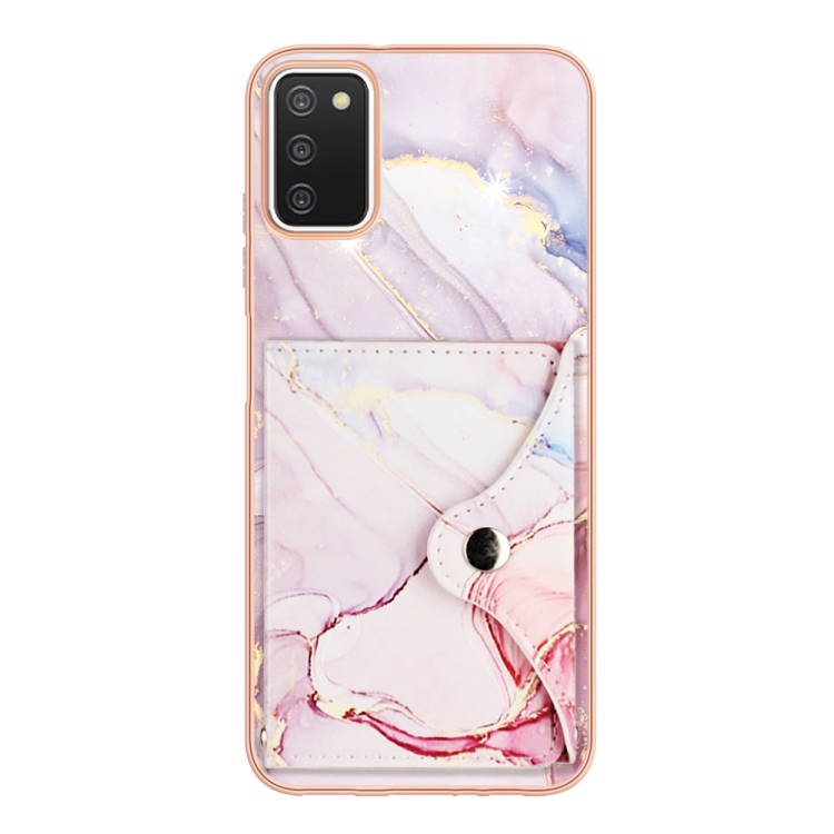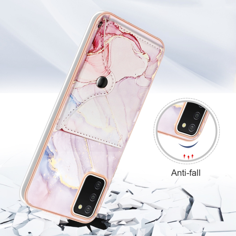 Estuche para Teléfono Samsung Galaxy A03S Versión Estadounidense con Ranura para Tarjeta IMD Patrón Mármol (Oro Rosa)