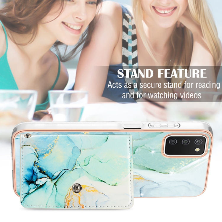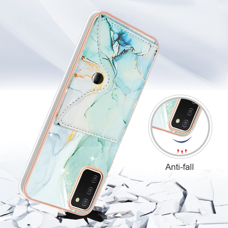 Estuche para Teléfono Samsung Galaxy A03S Versión Estadounidense con Ranura para Tarjeta Imd Patrón de Mármol (Verde)