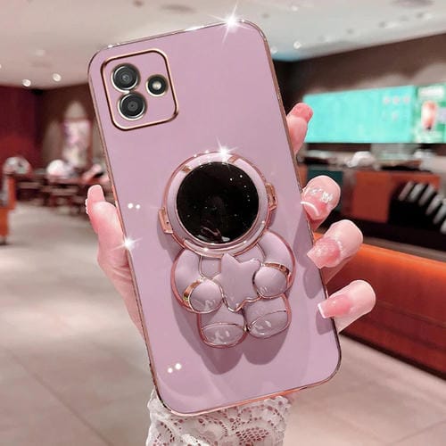 Estuche para Teléfono Samsung Galaxy A04 Embrace Stars con Soporte Astronauta Galvanizado (Púrpura)