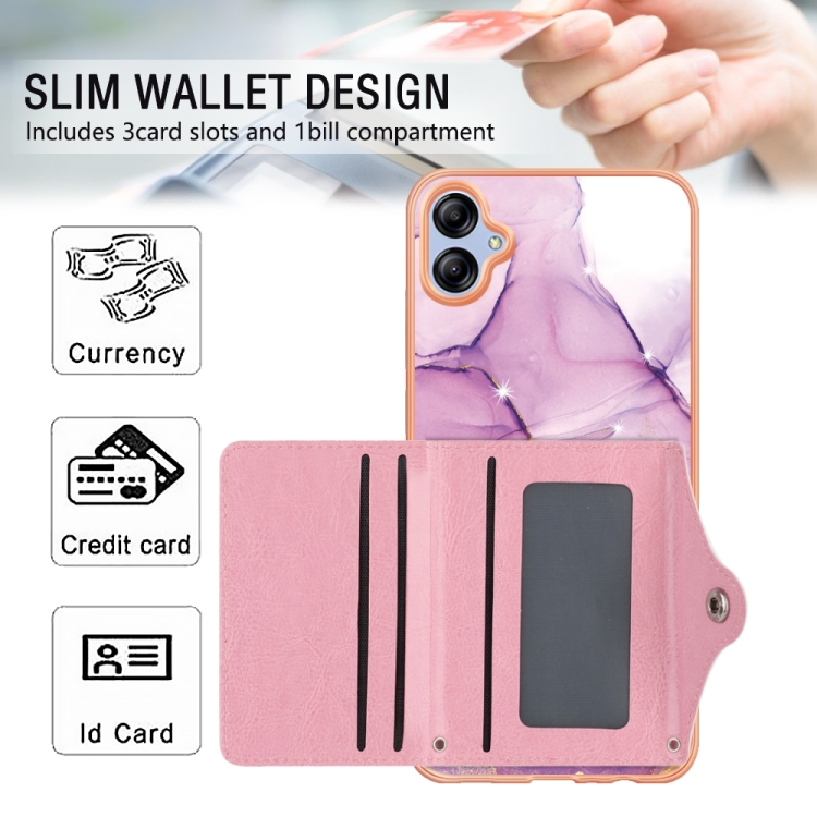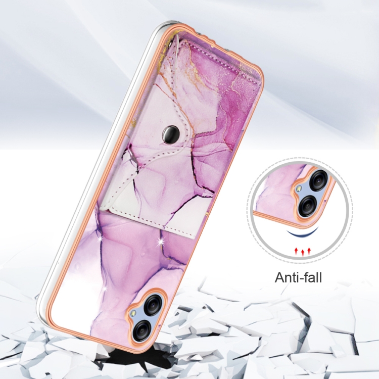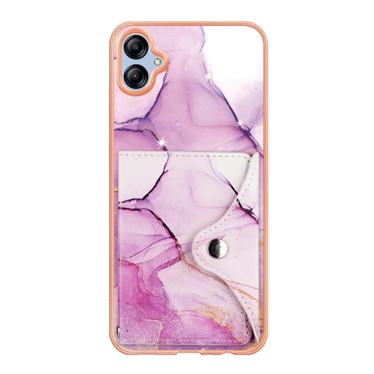 Estuche para Teléfono Samsung Galaxy A04E con Ranura para Tarjeta Imd Patrón Mármol (Oro Rosa Púrpura)