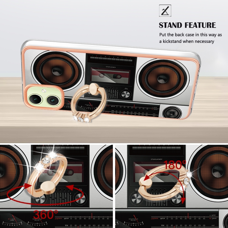 Estuche para Teléfono Samsung Galaxy A05 Imd Doble Cara con Galvanoplastia y Soporte para Anillo (Radio Retro)
