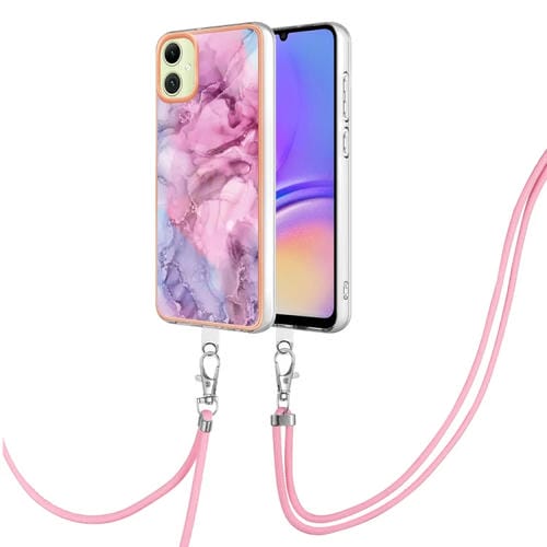 Estuche para Teléfono Samsung Galaxy A05 IMD Doble Cara Mármol Galvanizado con Cordón (Rosa)