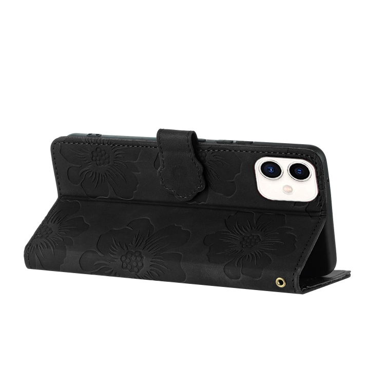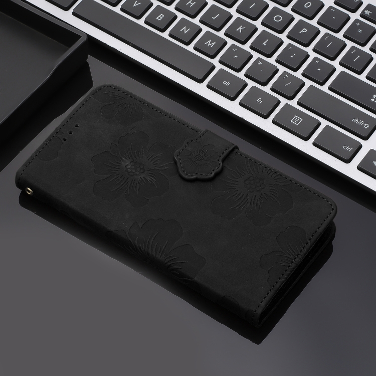 Funda de Cuero Samsung Galaxy A05 Estampado de Flores (Negro)