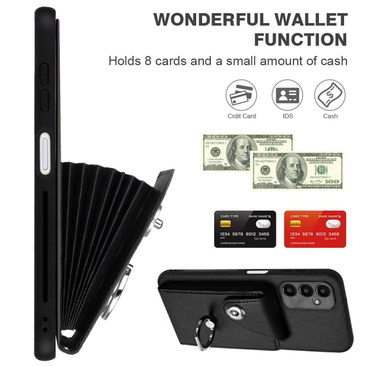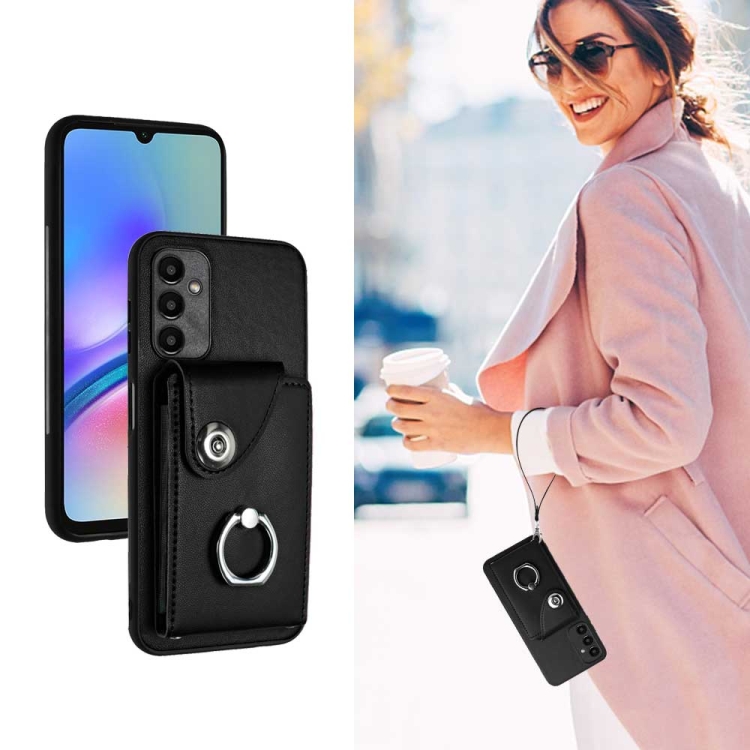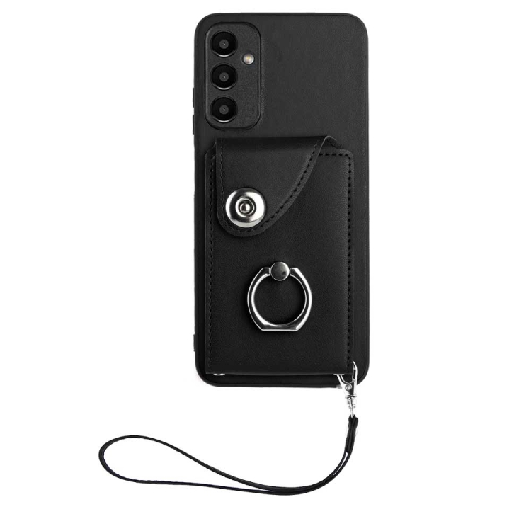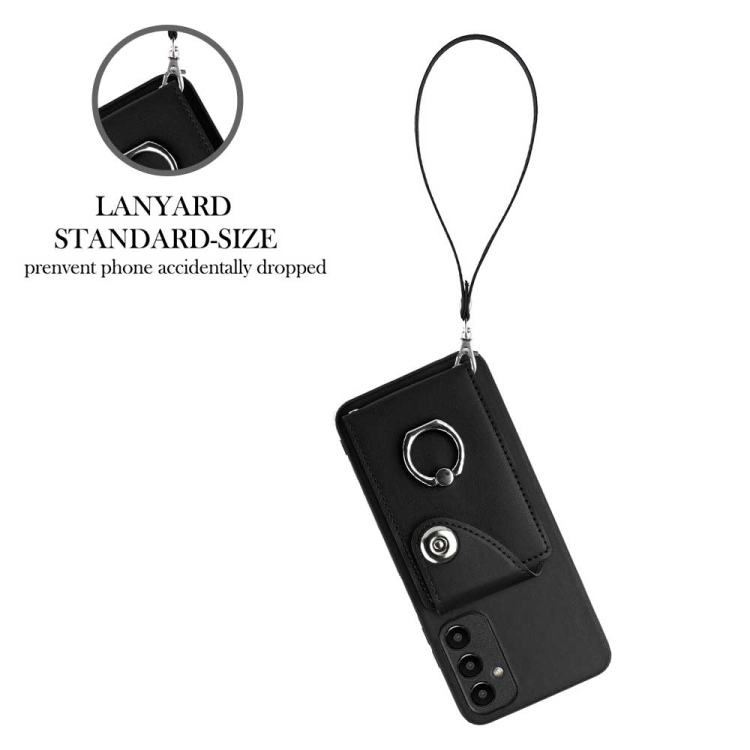 Funda para Teléfono Samsung Galaxy A05S 4G Organ Card Bag Ring Holder PU con Cordón (Negro)