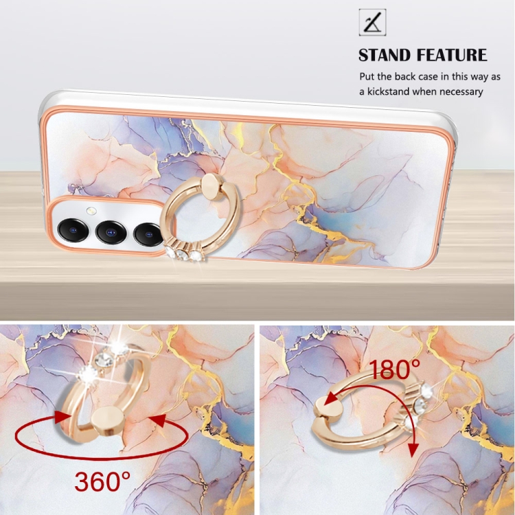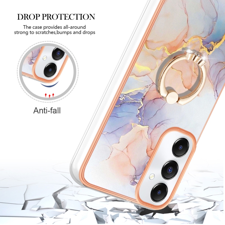 Estuche para Teléfono Samsung Galaxy A05S Imd TPU con Galvanoplastia con Anillo (Mármol Blanco)