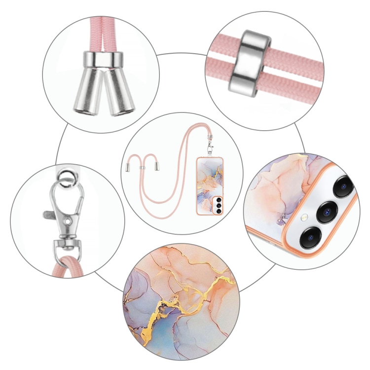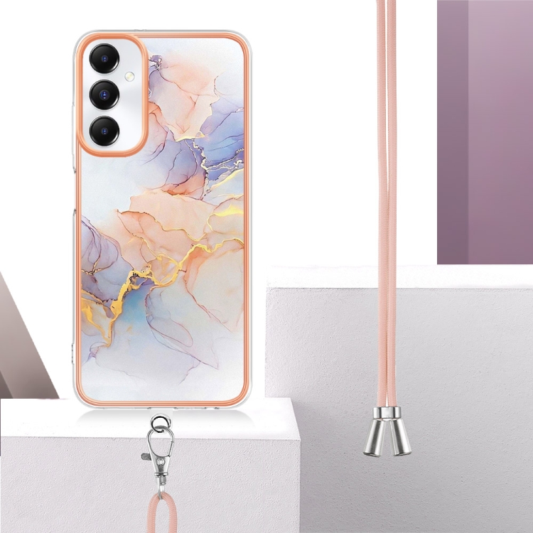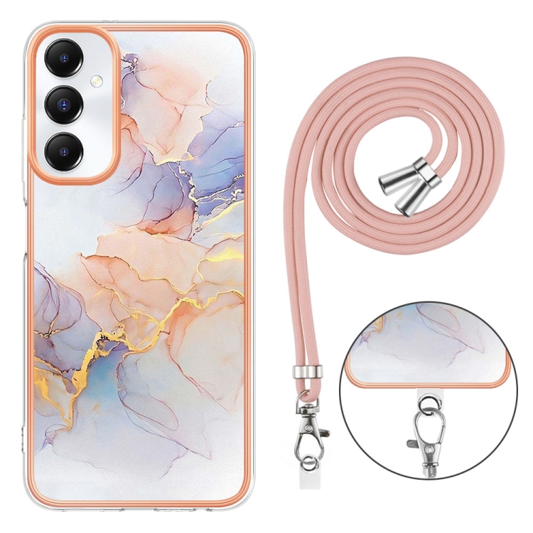 Estuche para Teléfono Samsung Galaxy A05S Imd TPU con Galvanoplastia y Cordón (Mármol Blanco)