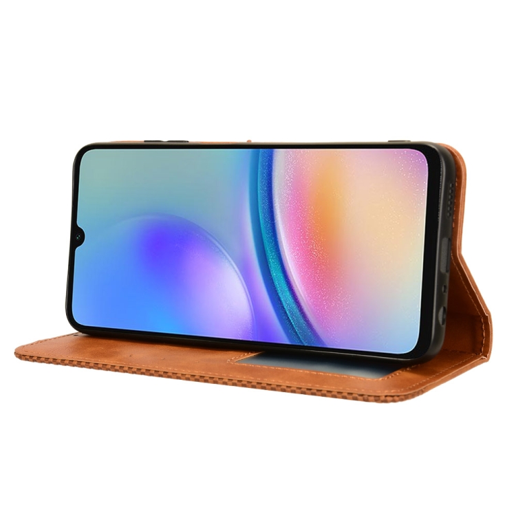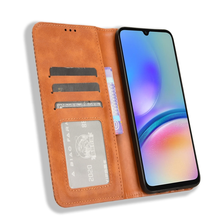 Funda para Teléfono Samsung Galaxy A05S Cuero Textura Retro Hebilla Magnética (Marrón)