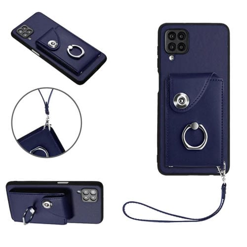 Funda para Teléfono Samsung Galaxy A12 de PU con Soporte para Anillo y Bolsa para Tarjeta con Cordón (Azul)