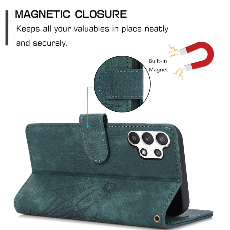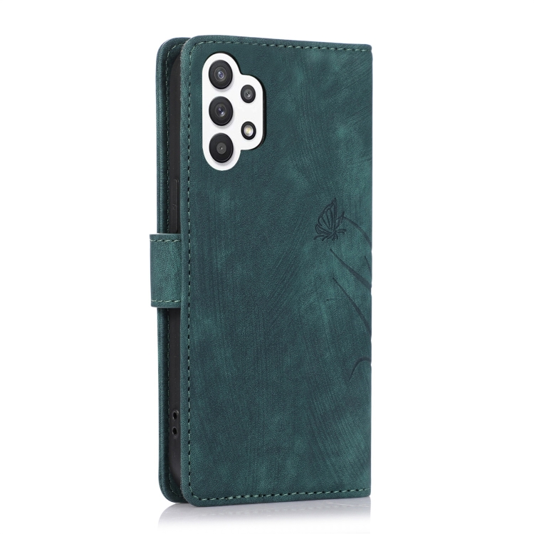 Funda para Teléfono Samsung Galaxy A13 4G 5G Cuero Relieve Mariposa Orquídea (Verde)
