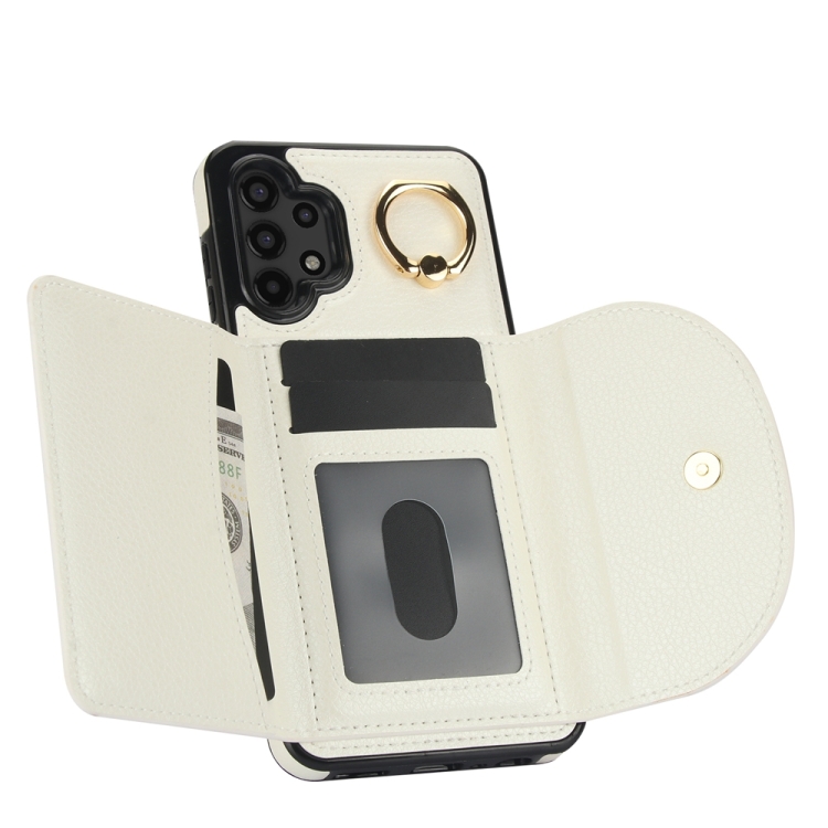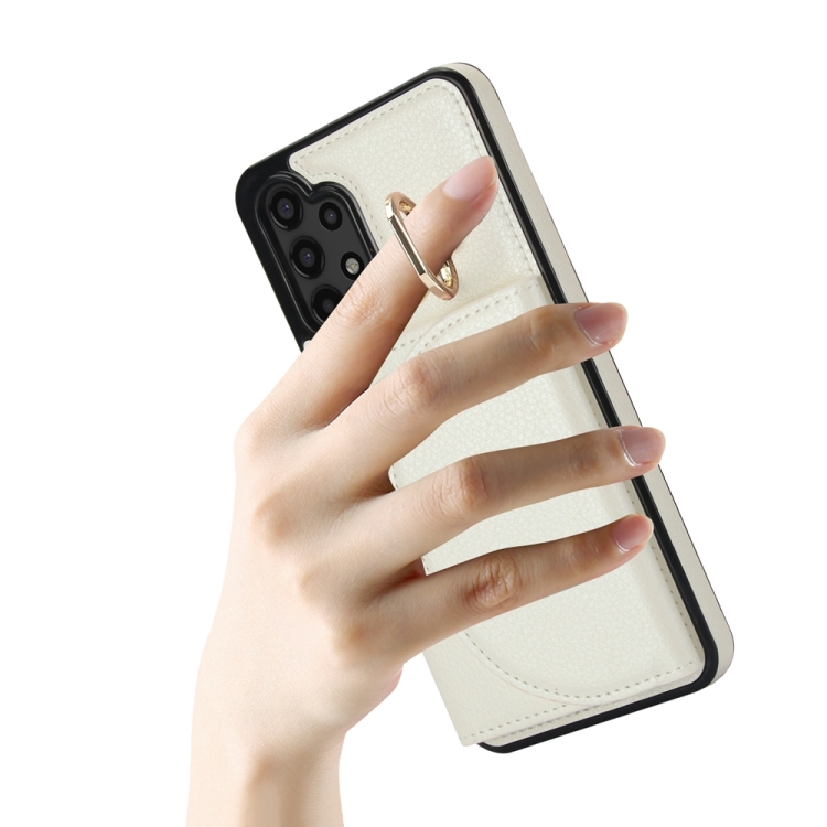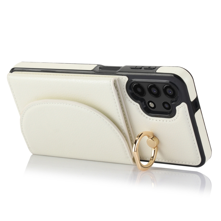 Funda para Samsung Galaxy A13 4G 5G Ym007 con Soporte para Anillo y Tarjeta con Sensación de Piel (Blanco)