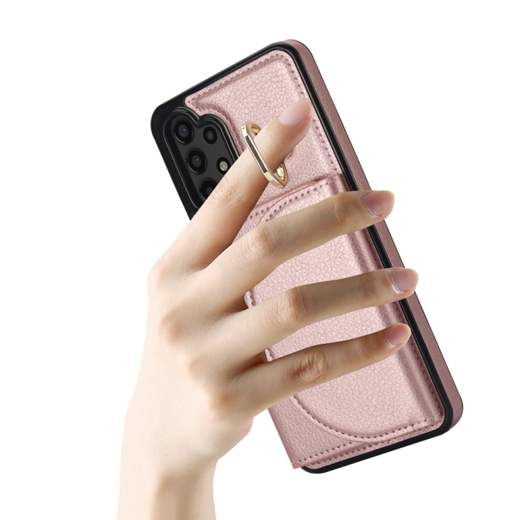 Funda para Teléfono Samsung Galaxy A13 4G 5G Ym007 con Soporte para Anillo y Tarjeta (Oro Rosa)