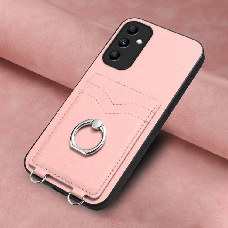 Estuche para Teléfono Samsung Galaxy A14 5G R20 con Soporte para Tarjeta y Anillo (Rosa)