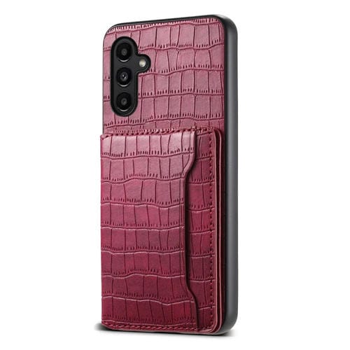 Estuche para Teléfono Samsung Galaxy A14 Bolsa para Tarjetas Textura de Cocodrilo (Rojo)