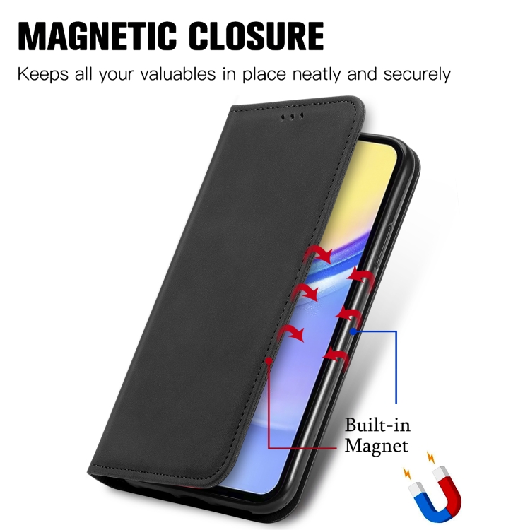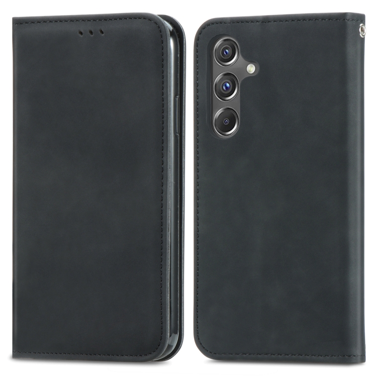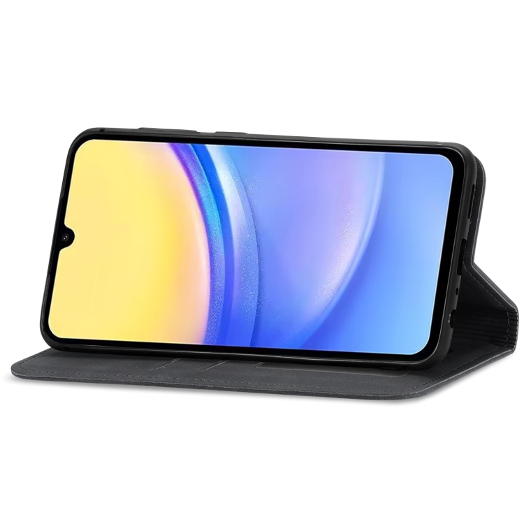 Funda de Teléfono Samsung Galaxy A15 Cuero Magnético Sensación de Piel Retro (Negro)