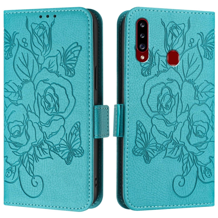 Estuche para Teléfono Samsung Galaxy A20S Cuero Antirrobo Rfid Rosa En Relieve (Azul Claro)