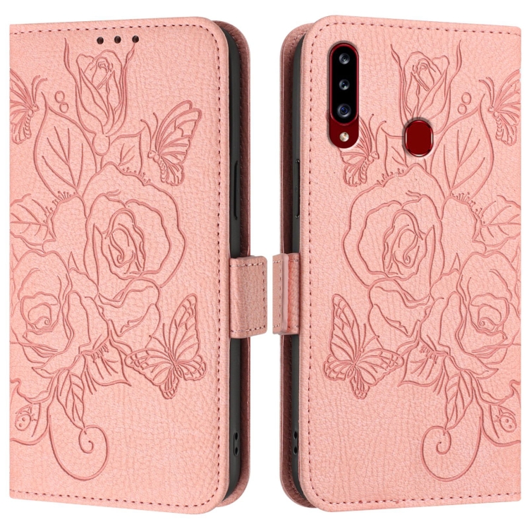 Estuche para Teléfono Samsung Galaxy A20S Cuero Antirrobo RFID con Rosa en Relieve (Rosa)