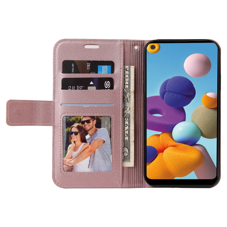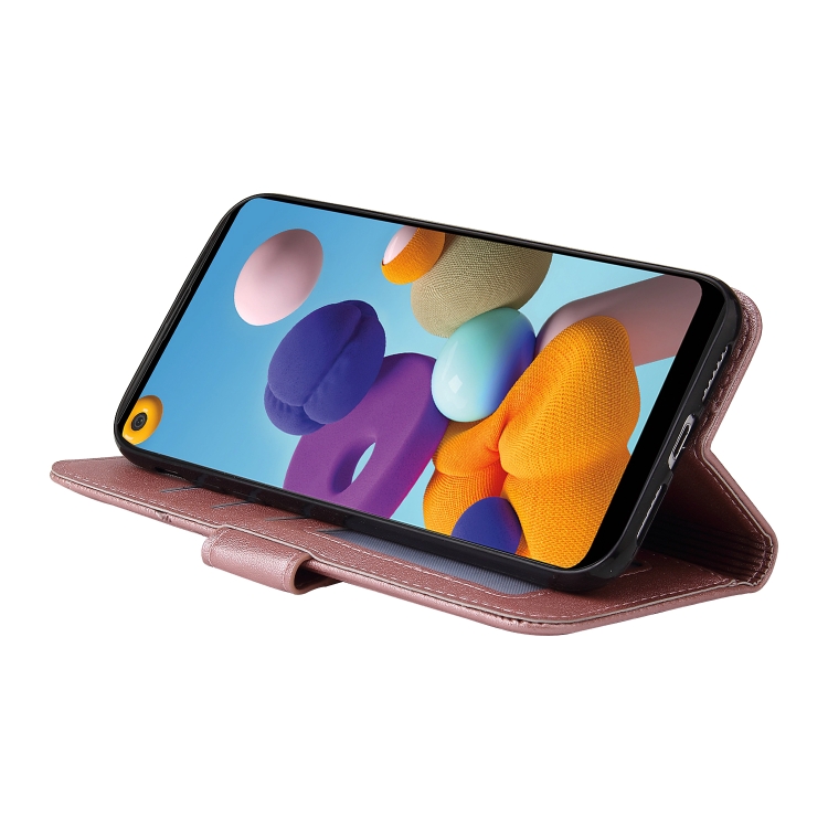 Estuche para teléfono Samsung Galaxy A21 Gq Utrobe Cuero en ángulo recto (Oro Rosa)