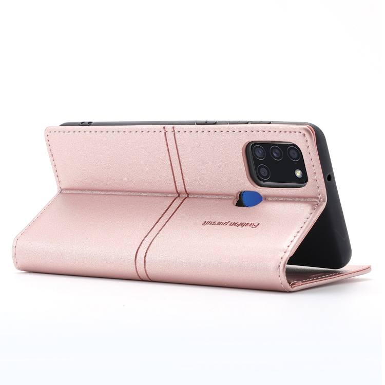 Funda para Samsung Galaxy A21S Dream Magnetic Sucion Flip Horizontal PU Cuero con Soporte y Ranura para Tarjeta y Billetera (Oro Rosa)