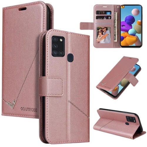 Estuche para Teléfono Samsung Galaxy A21S Gq Utrobe Cuero en Ángulo Recto (Oro Rosa)