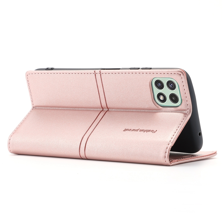 Funda para Samsung Galaxy A22 5G Dream Magnetic Sucion Horizontal Flip PU Cuero con Soporte y Ranura para Tarjeta y Billetera (Oro Rosa)