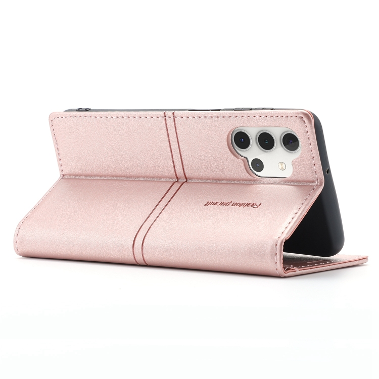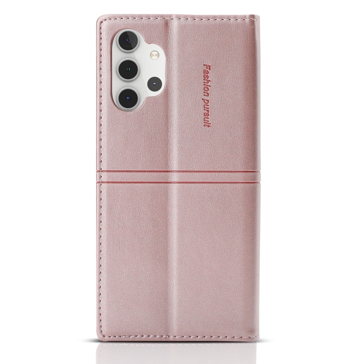 Funda para Samsung Galaxy A32 4G Dream Magnetic Sucion Business Flip Horizontal PU Cuero con Soporte y Ranura para Tarjeta y Billetera (Oro Rosa)