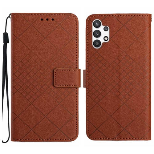 Funda para Samsung Galaxy A32 4G Cuero Textura Rejilla Rómbica (Marrón)