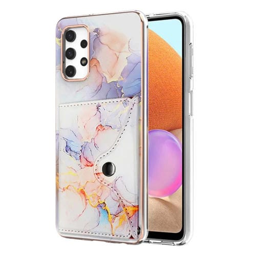 Estuche para teléfono Samsung Galaxy A32 4G Versión UE con ranura para tarjeta y patrón de mármol (Blanco)