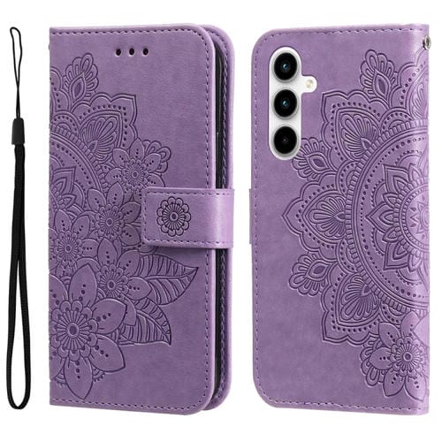 Funda de Cuero Samsung Galaxy A35 Estampado Flores 7 Pétalos (Púrpura Claro)