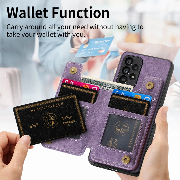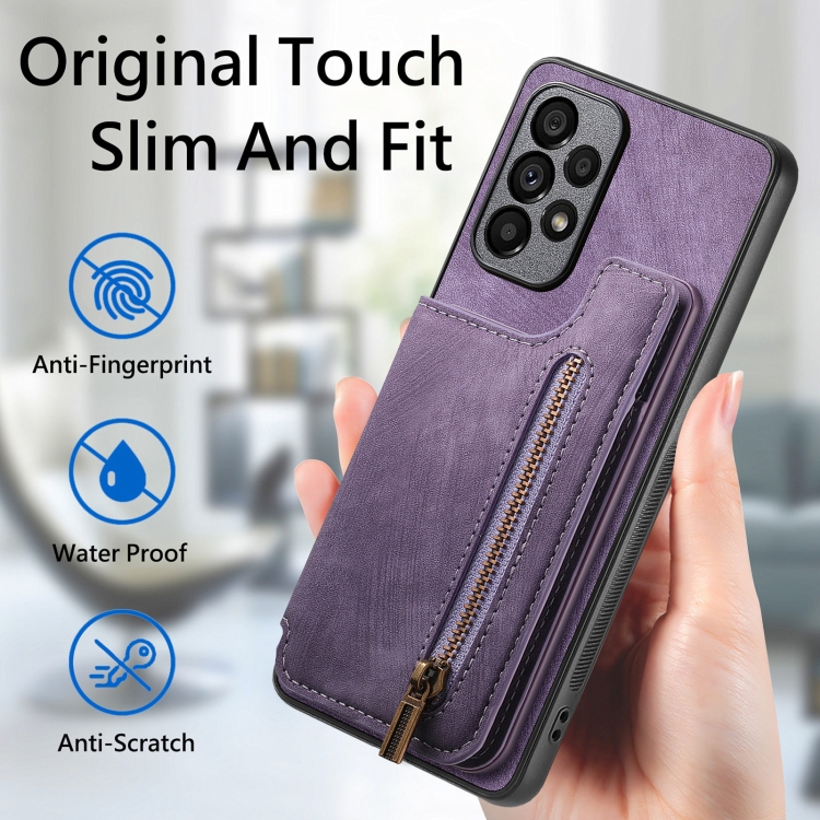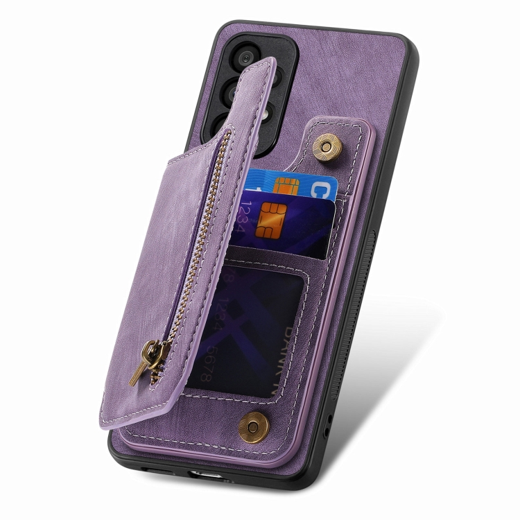 Estuche para teléfono Samsung Galaxy A50 A30S A50S con billetera y cremallera de cuero (Púrpura)