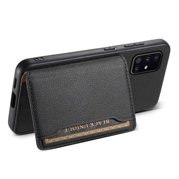 Estuche para Teléfono Samsung Galaxy A51 4G con Diseño de Bolsa para Tarjetas Textura de Becerro (Negro)