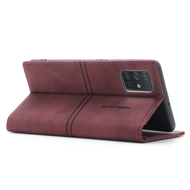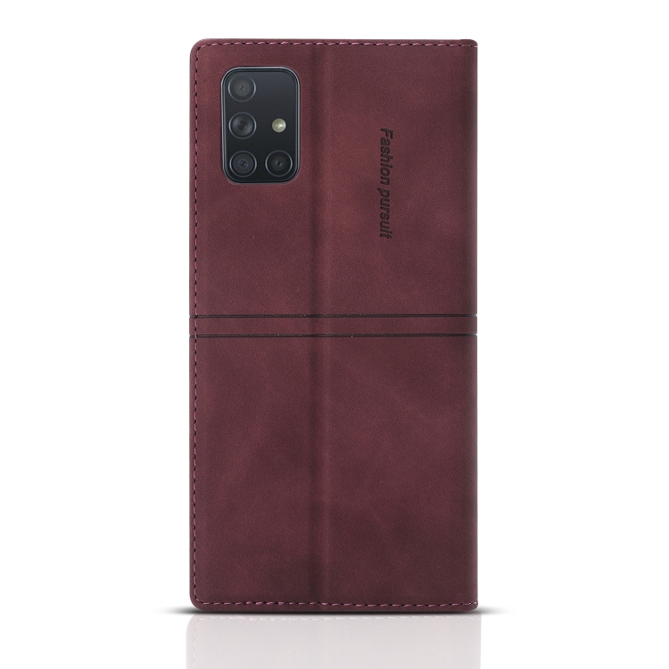 Funda para Samsung Galaxy A51 5G Flip Horizontal PU Cuero con Soporte y Ranura para Tarjeta y Billetera (Rojo de Vino)