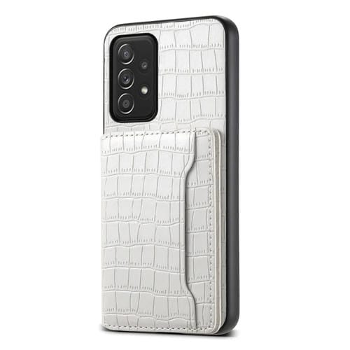 Funda para Teléfono Samsung Galaxy A52 5G Diseño Bolsa para Tarjetas Textura Cocodrilo (Blanco)