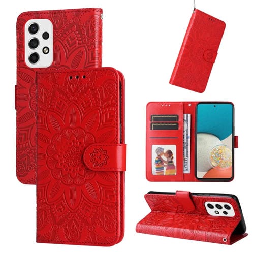 Estuche para Teléfono Samsung Galaxy A53 5G Cuero Estampado de Girasol En Relieve (Rojo)