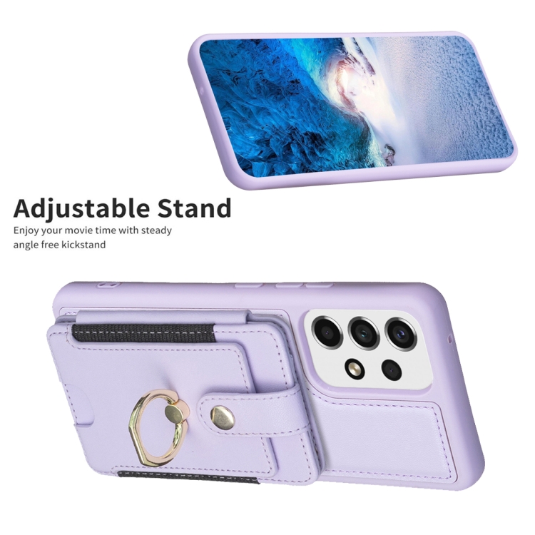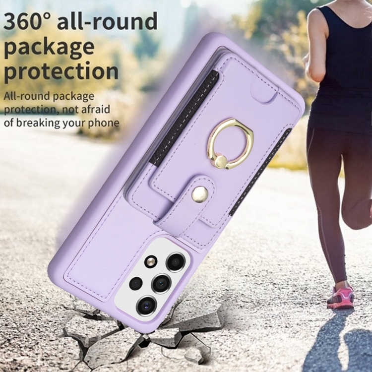 Para Samsung Galaxy A53 BF27 Metal Ring Card Bag Holder Phone Case (Púrpura)