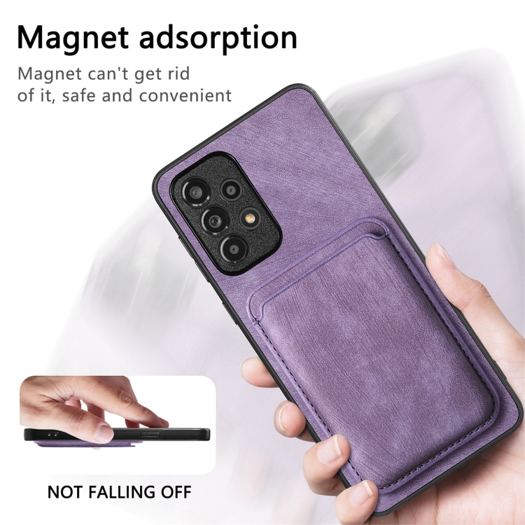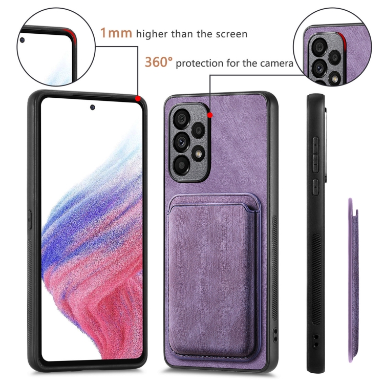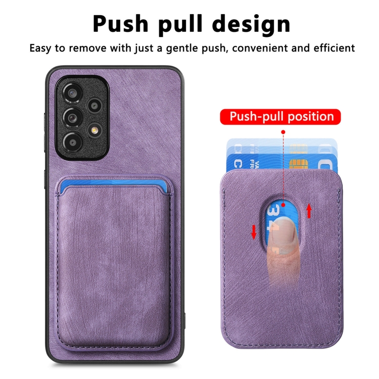 Funda de Teléfono Samsung Galaxy A53 Magnética con Bolso de Tarjeta de Cuero Retro (Púrpura)